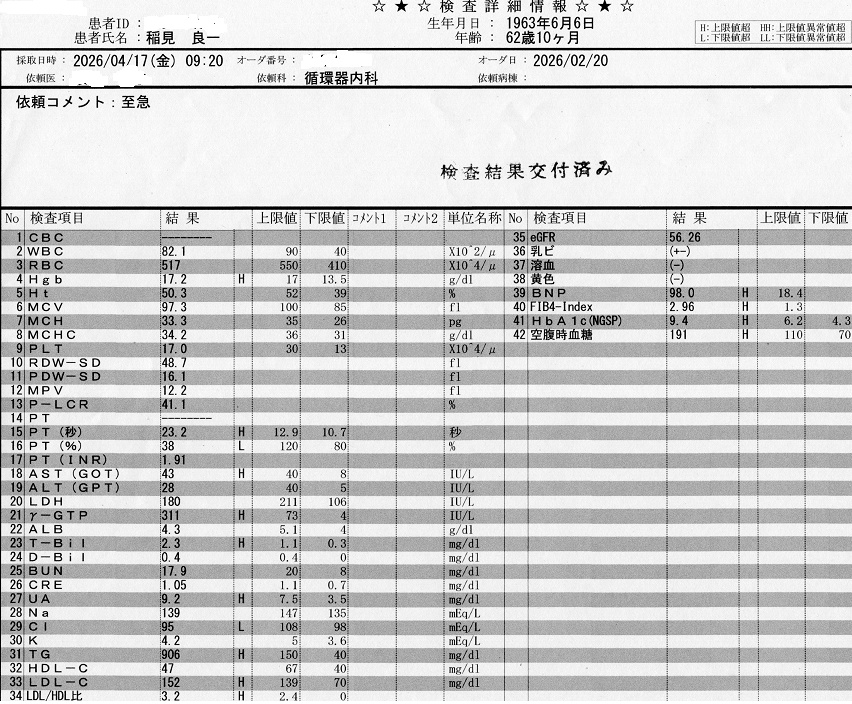 hba1cが、9.4と前回と同じ悪い値。